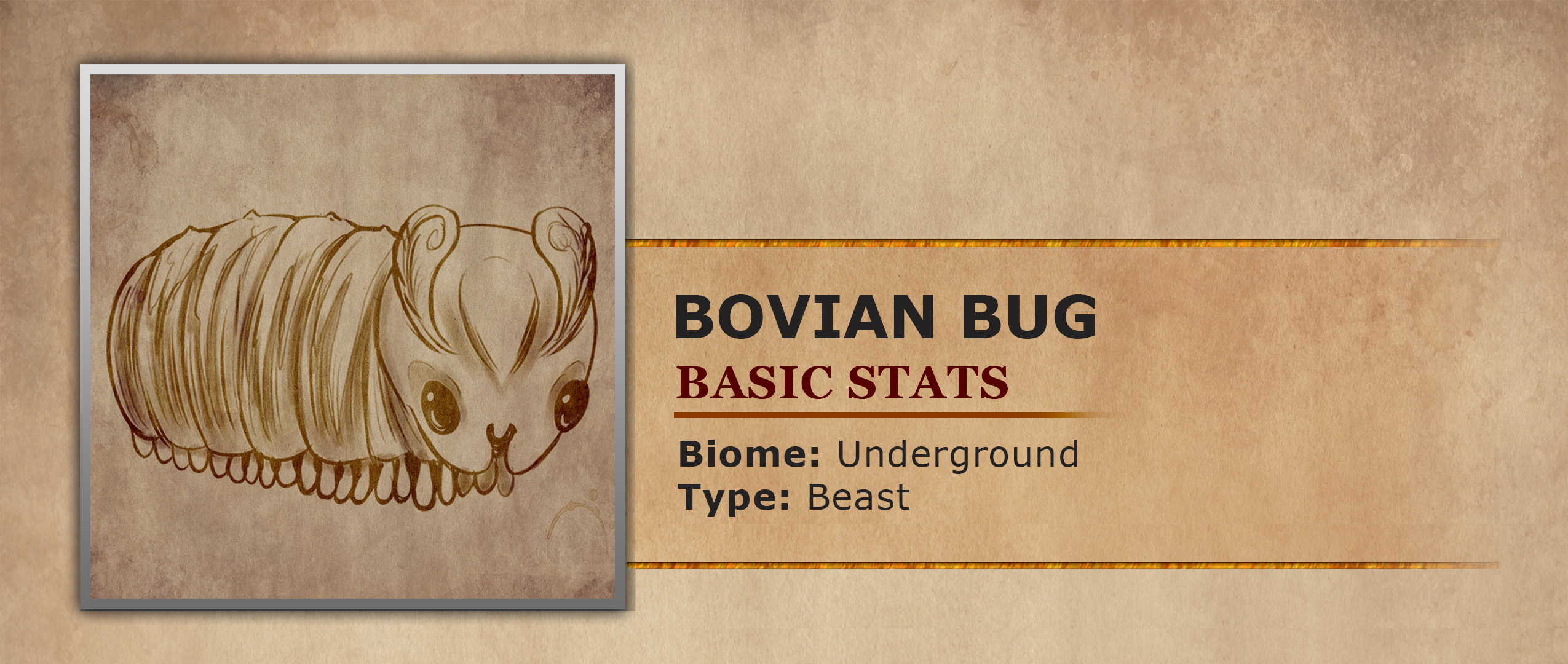 Bovian Bugs are subterranean arthropods that resemble exaggerated pillbugs, whose size rivals the average Mossback Bleater. Beneath these large bodies are thick, nubby, and numerous, legs. As they walk these legs press deep into the soft damp soil, leaving behind neat, shallow furrows. This constant churning of the ground makes their passage easy to identify in the fields. Farmers often say that a single Bovian Bug can till a plot more evenly than a team of laborers, simply by wandering through it over the course of a day. While these legs are powerful enough to hold up their large bodies and plow fields they cause the Bovian Bug to move quite slowly. This slow movement might cause problems for certain creatures but luckily they come equipped with segmented overlapping plates, which form a natural almost impenetrable armor. This armor allows the Bovians to take their time wandering the Gloom in search of soft fungus on which to graze. To help them find their favorite foods in such a dark environment these insects have large, black eyes to take in as much light as possible. Not only that but resting upon their heads are rounded antennae, which sense moisture, spores and familiar stomping grounds. These antennae also sense danger and decay. Meaning farmers in the underground farms often rely on the Bovians presence as a form of bioindicators. If herds of Bovian are staying around the farms it is a sign of a healthy and safe ecosystem. However, if the Bovians suddenly get up and leave the area it is considered a bad omen.