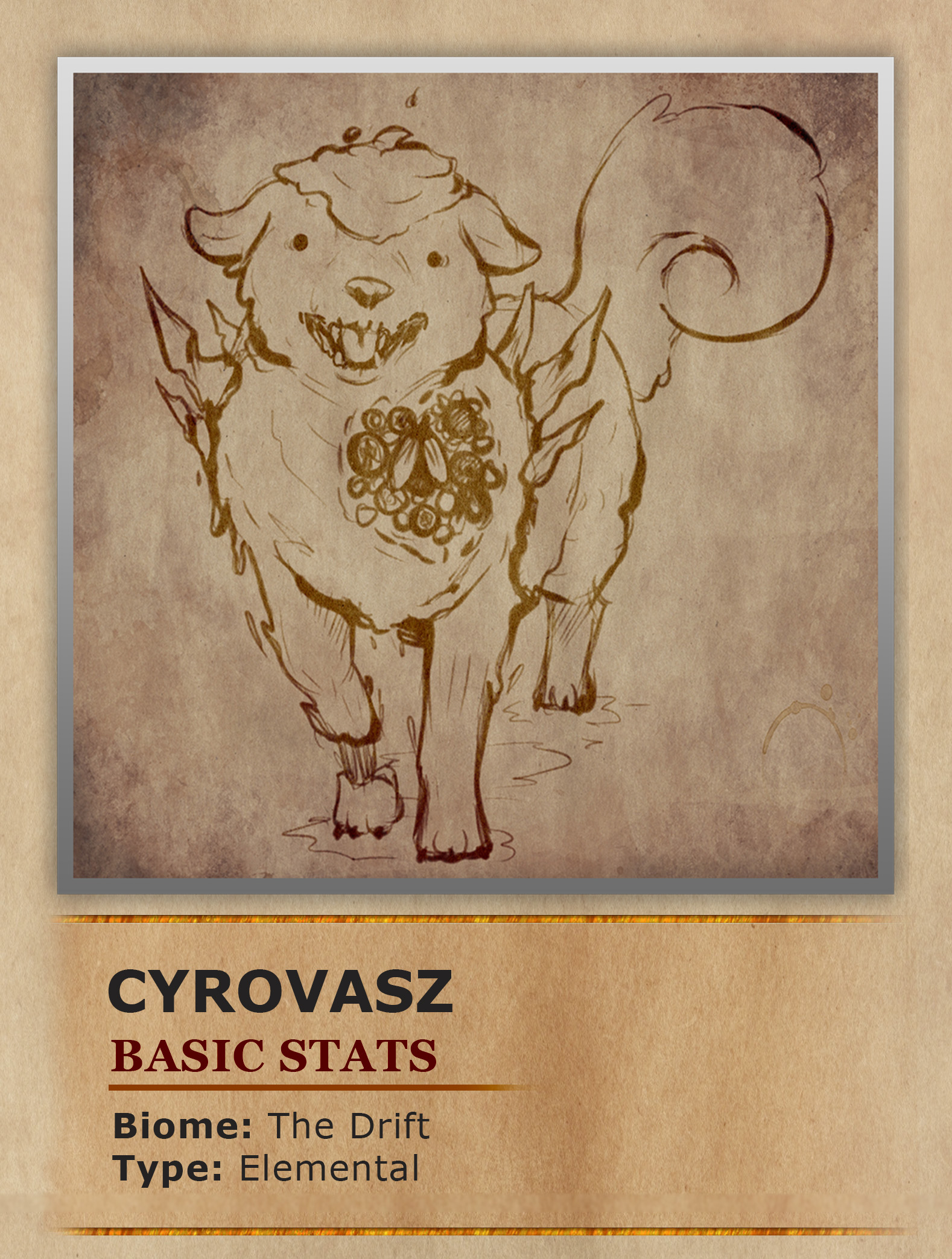 Cyrovasz are large bulky elemental canines native to the Twilite Drifts Winter court. Their affinity for cold magic allows them to lower and raise their bodies temperature at will. Which comes in handy when your body is made entirely out of snow and ice. This power also enables them to create temperatures so cold they are able to freeze enemies solid. Even those considered under normal circumstances immune to the colder elements. The fey of the winter court consider Cyrovasz both powerful guardians and a status symbol for nobility. The status of a Cyrovasz is made clear by the medals adorned on their fur. The more medals present the older and more ancient the beast is. Although quite powerful the Cyrovasz are loyal creatures and feel bound to serve the owners of whatever land they are born into. This loyalty can also extend to smaller fae-folk such as Patchfoots, acting as guardians to their cities or joining them on hunting trips when needed.