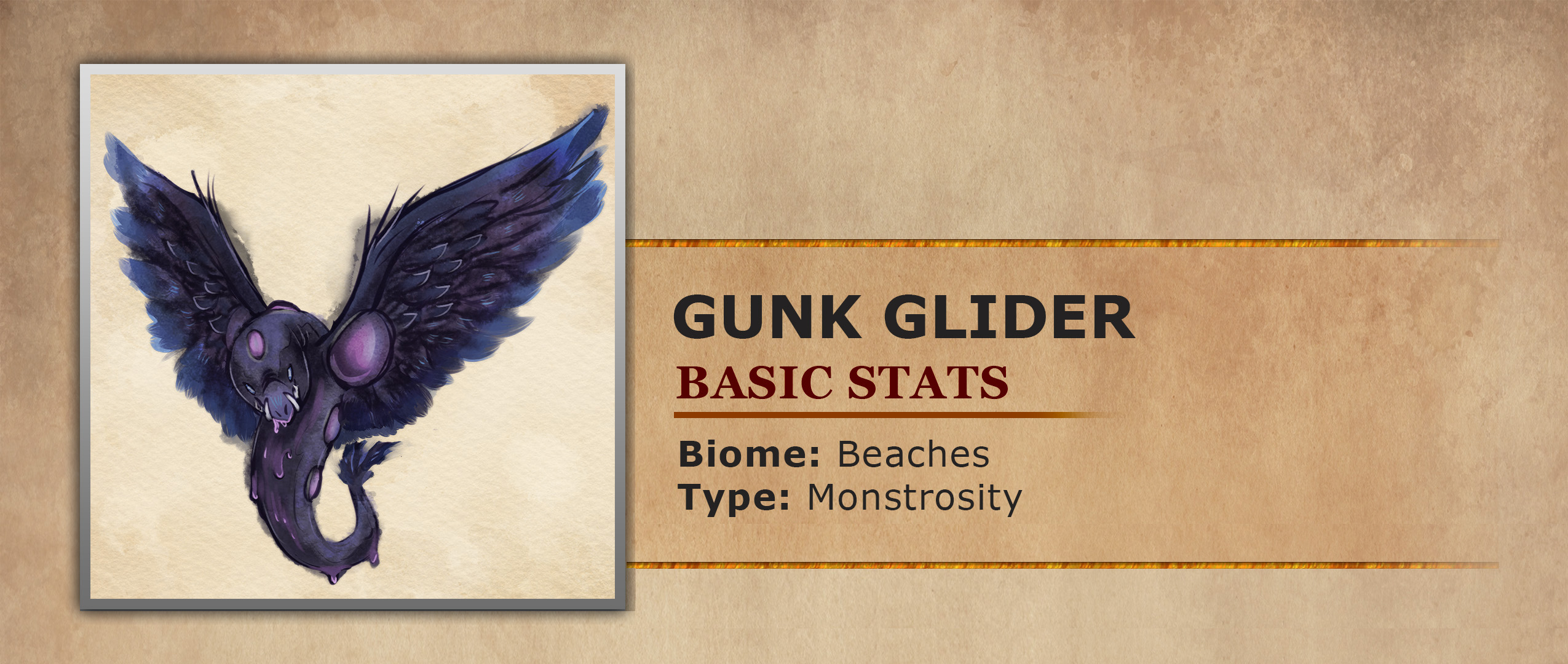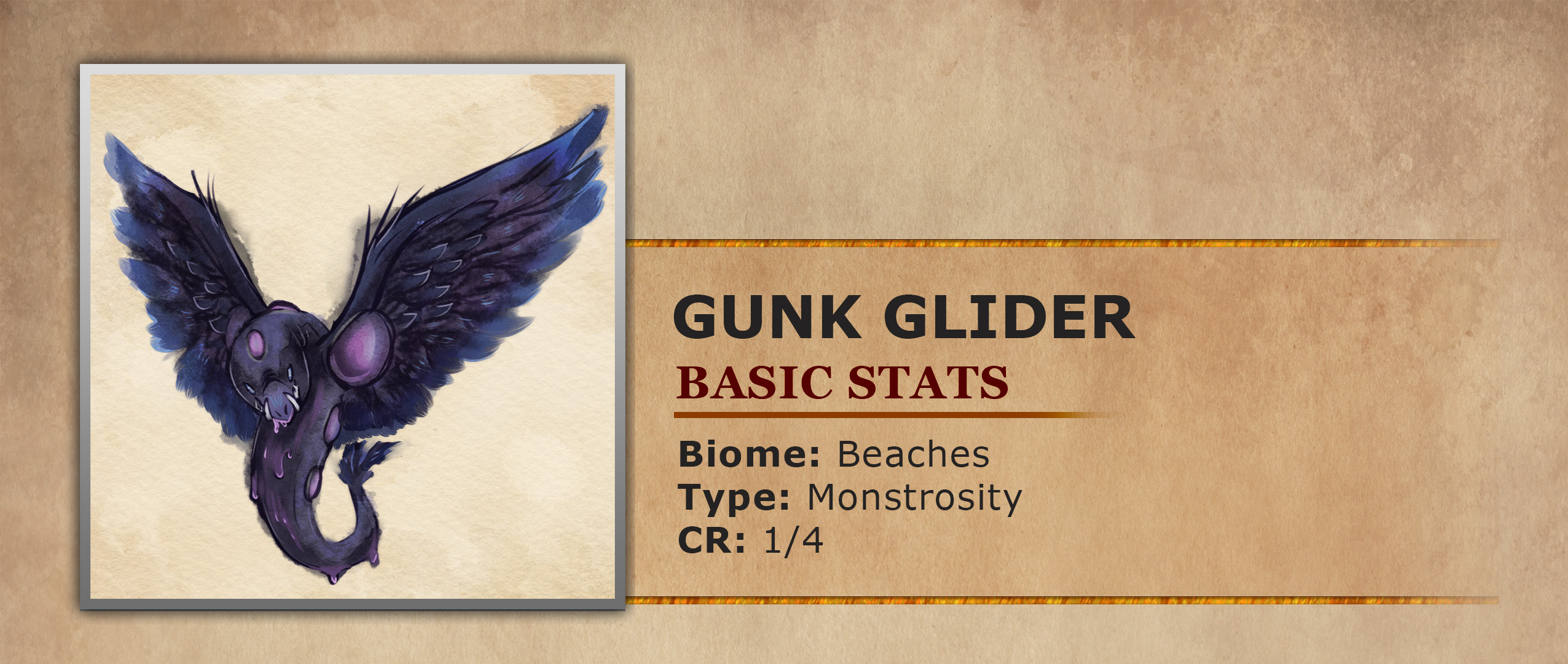 This CR1/4 creature is called a Gunk Gliders and is a Monstrosity that lives mostly within the Beaches.