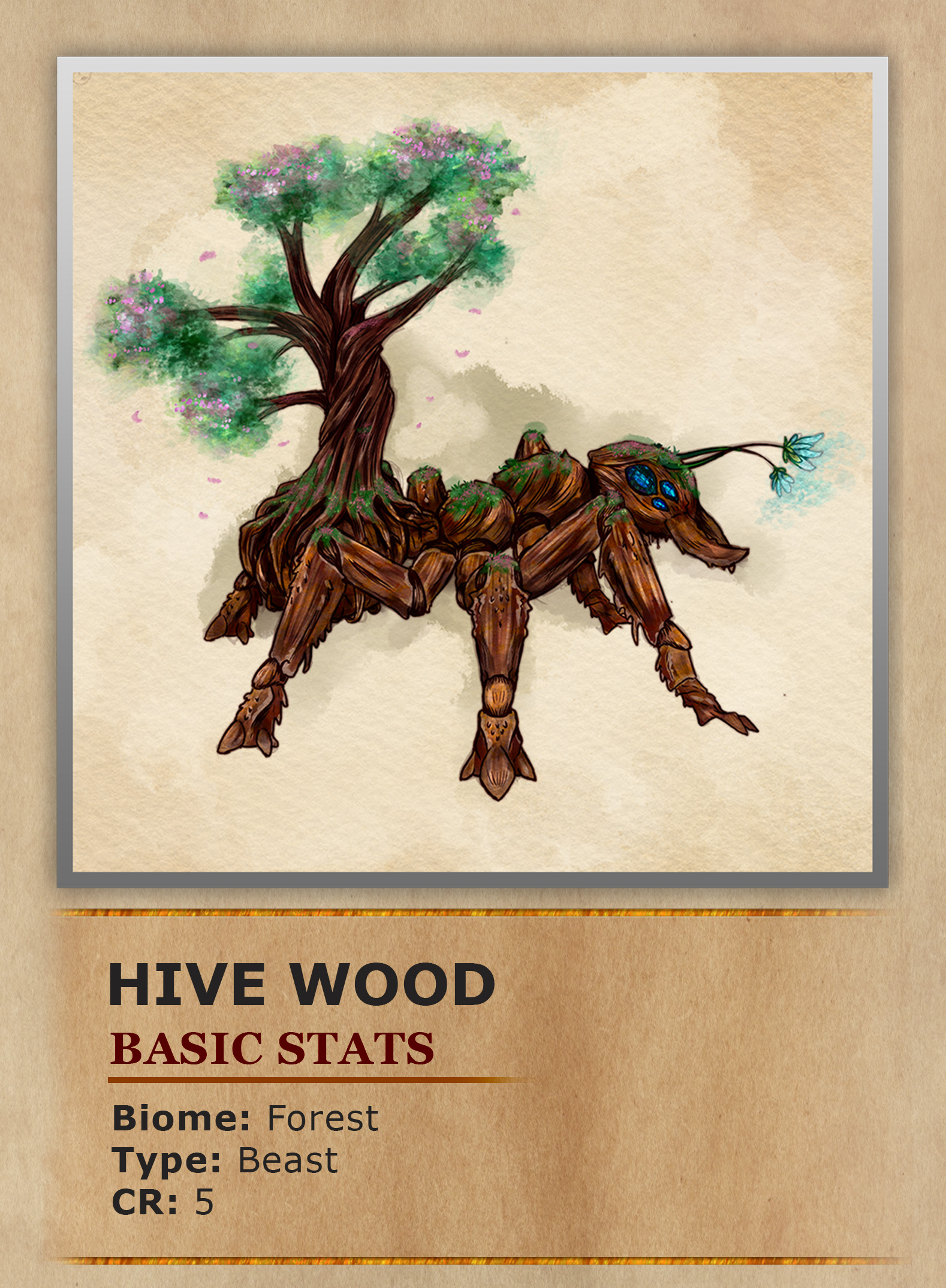This CR5 creature is called a Hive Wood and is a Beast that lives mostly within the Forests.