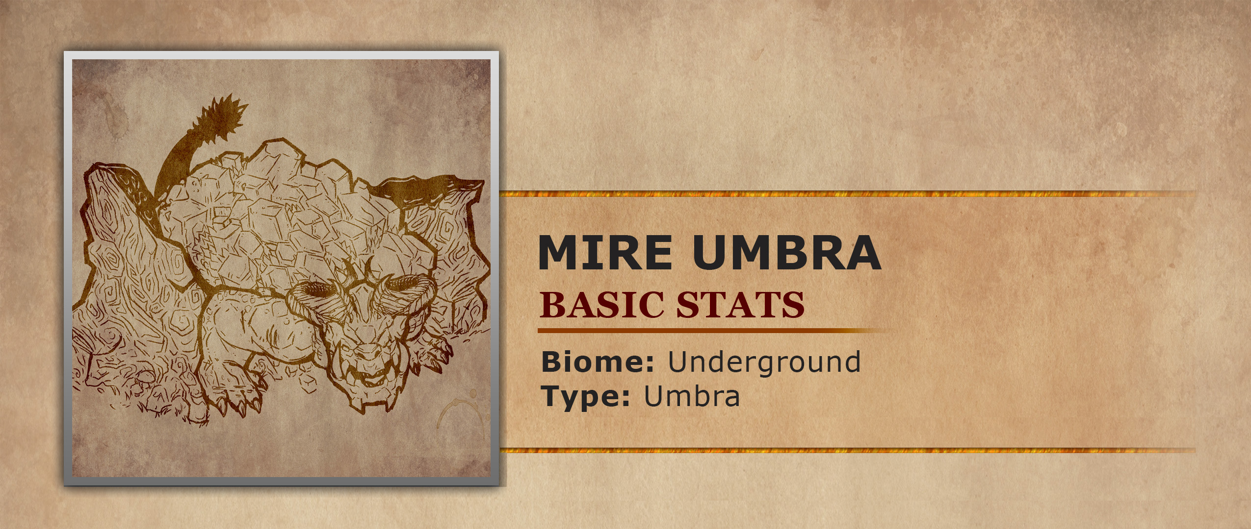 Mire Umbras are colossal subterranean reptiles that dwell beneath the surface of Crius, carving their way through the earth in an endless search for food and long-buried treasures. Though more intelligent than common beasts, they are among the most primal of all Umbra species, driven by instinct and an insatiable hunger for the secrets hidden below.