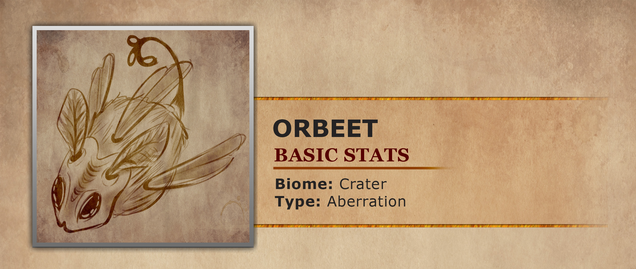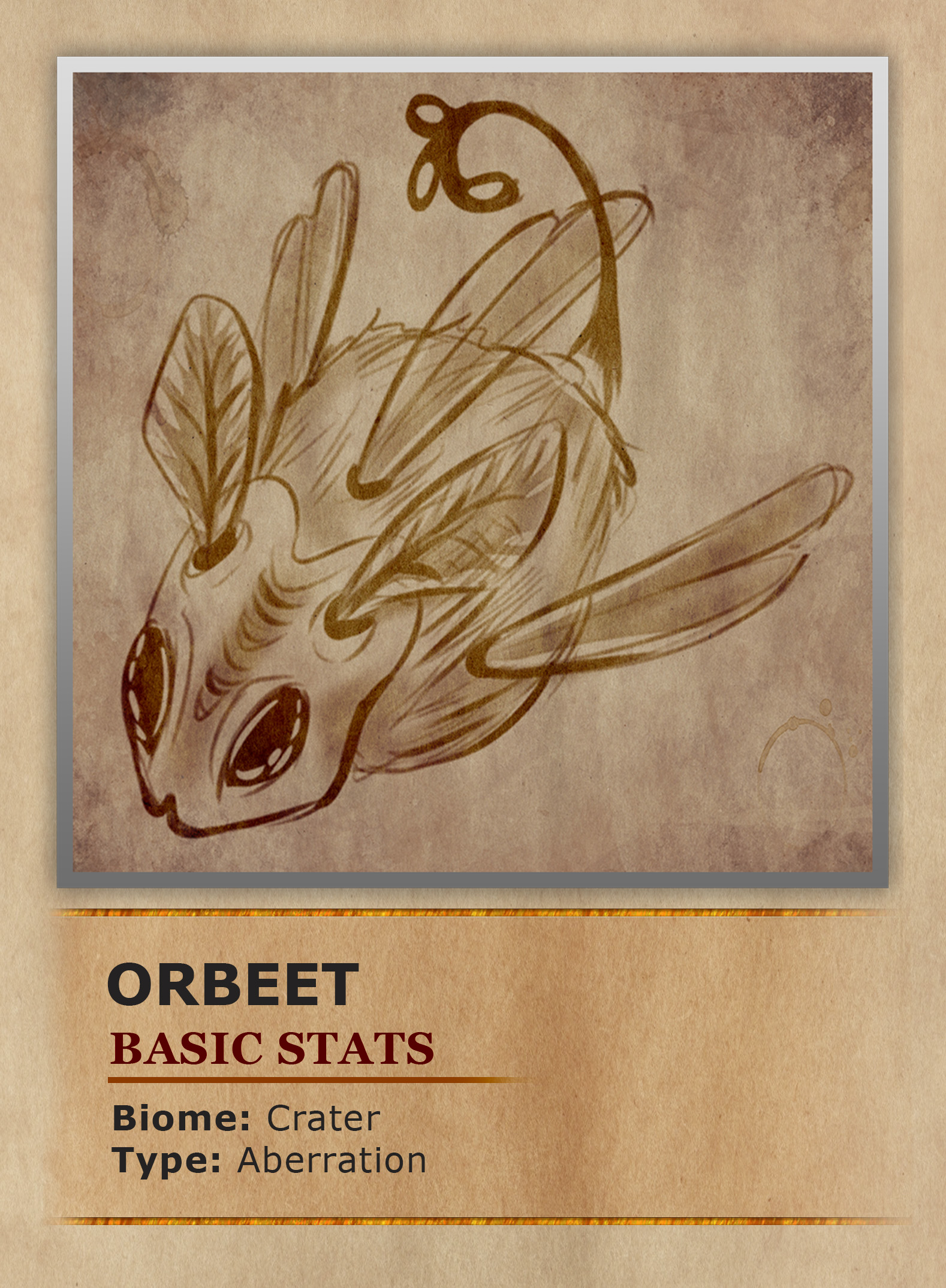 Flying sporadically around the foliage that makes up the Chorus Crater are strange fuzzy insects called Orbeets. Their sporadic movement is due to them having three wings, two on the sides of their body and one sticking up from the top. While odd this wing structure gives them excellent speed and maneuverability in the air. Their extra wing is not the only adaptation these insects have developed from this strange ecosystem. The radioactive atmosphere here is to such an extent that they exclusively collect radioactive pollen. However, due to them lacking legs they developed an odd way to collect said pollen. When they find a chosen flower they will encircle the plant rapidly until the draft created from their flying stirs up the flower's pollen. The then loose pollen gathering in the air collects on the Orbeets' fuzzy bodies. This radioactive covering also gives the Orbeets a useful defense against predators. Highly social insects, the Orbeets collect their radioactive pollen in hives made of hardened rock. The hives are governed by a central queen Orbeet, who is much larger than the workers of the hive. While they lack legs they do have a proboscis on their thorax that is able to grip onto surfaces. With this they are able to hang upside down within their hives when resting.