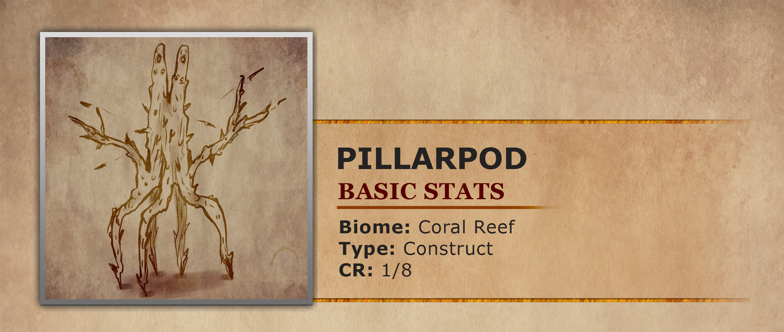 This CR1/8 creature is called a Pillarpod and is a Construct that lives mostly within the Coral Reef.