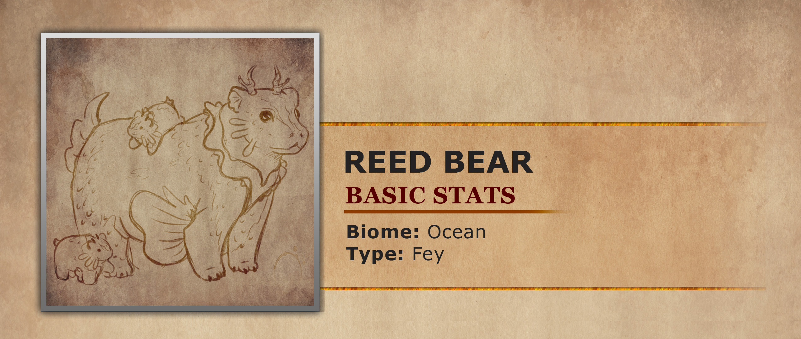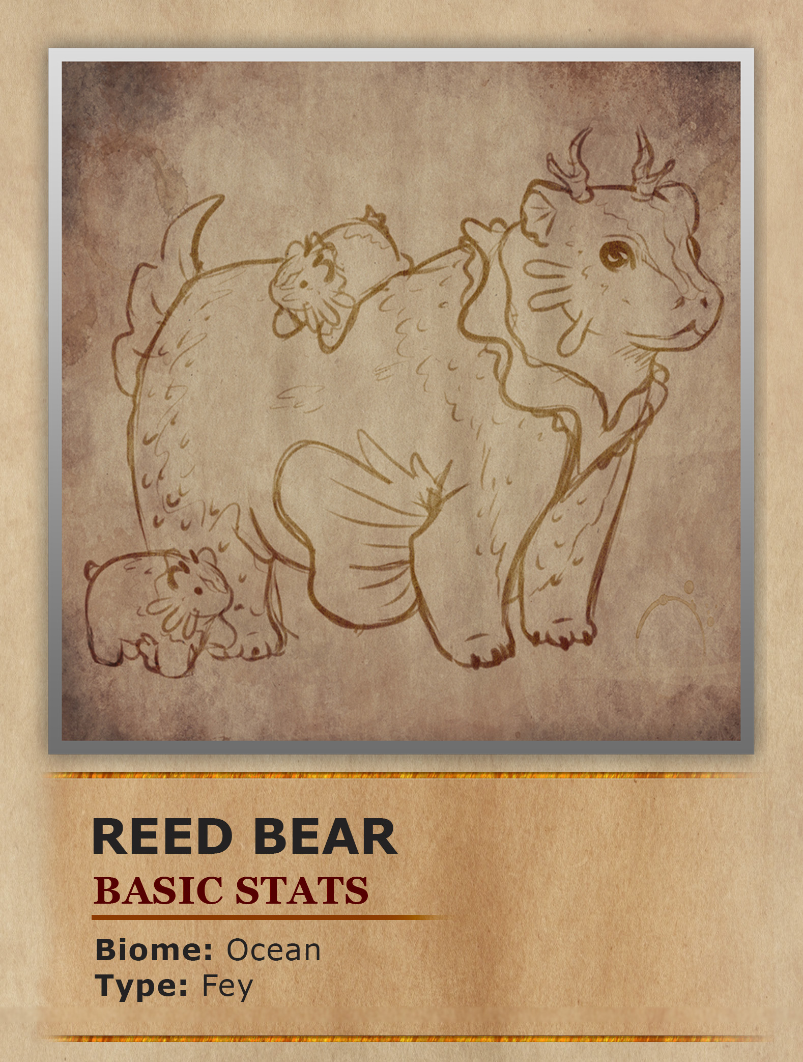 Born of the Drift, Reed Bears embody the playful and curious nature of their fey origins. They are known to form deep bonds with those they trust, bringing a touch of whimsy and companionship to the underwater world they call home.