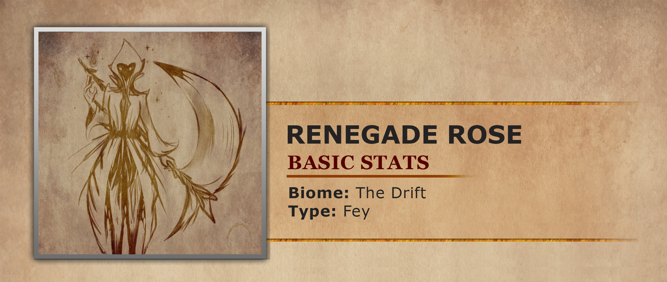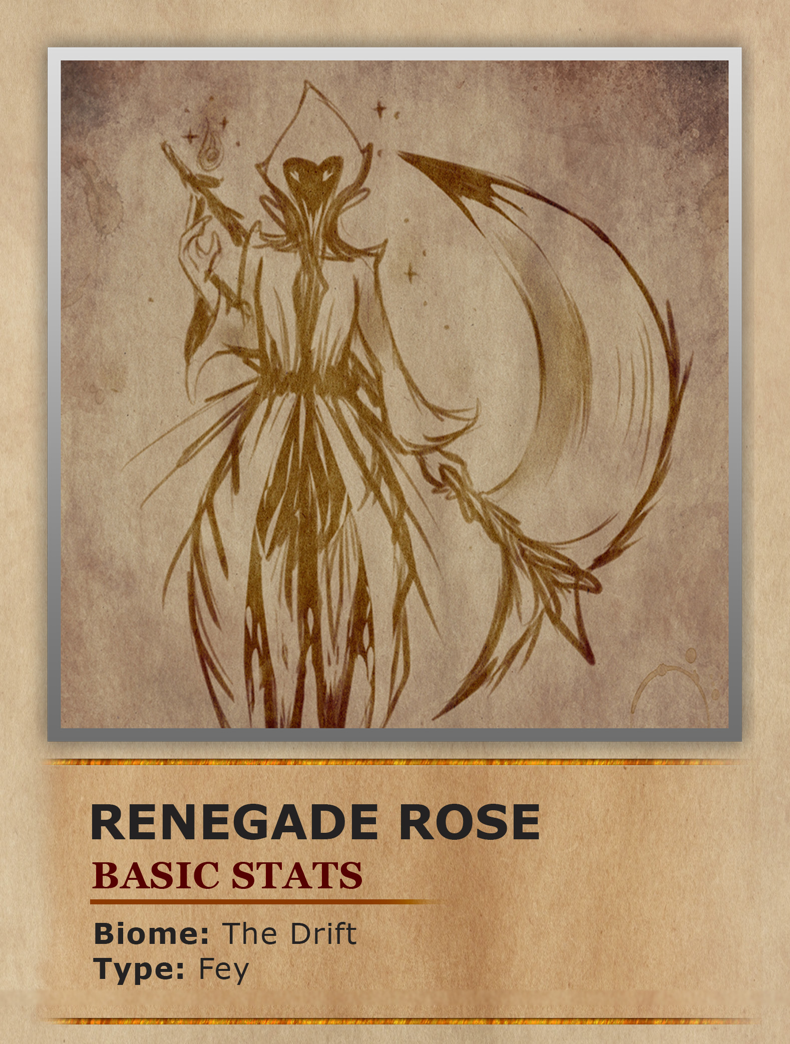 True to their fey nature, Renegade Roses are masters of deception. They wield powerful illusions to beguile, confuse, or lure their quarry into a vulnerable position, striking when the time is right. These illusions often take the form of comforting figures, safe havens, or enticing promises, masking the malicious intent of these relentless hunters.