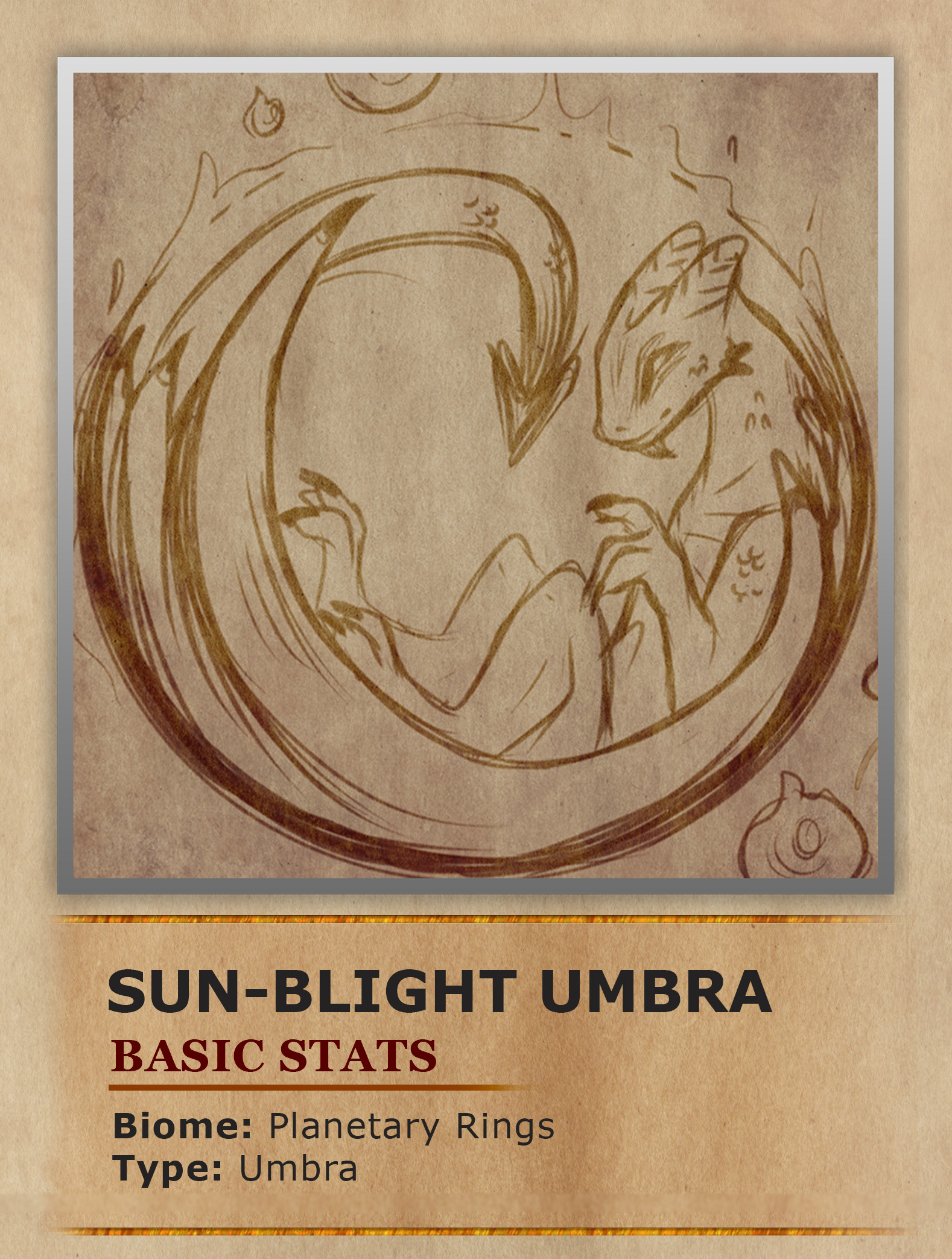 Within the lineage of Gale Umbras, a phenomenon of awe-inspiring rarity emerges, the Sun-Blight Umbras, a manifestation of genetic mutation that propels these majestic reptiles to unparalleled heights of power. Initially indistinguishable from their Gale Umbras counterparts in their early stages, the divergence becomes increasingly apparent as time weaves its course. Remarkably, these celestial beings undergo a transformative shift in their dietary preferences, foregoing organic sustenance to develop an insatiable craving for thermal energy. As the Sun-Blight Umbras mature, their voracious appetite escalates to the point where the eldest among them partake in the consumption of pure plasma sourced from the very cores of stars. Gradually, they master the art of harnessing solar heat until a zenith is reached where their entire bodies undergo a mesmerizing transformation, transmuting into pure thermal energy. The visual spectacle of a Sun-Blight Umbra is nothing short of extraordinary. Its form is adorned with celestial constellations, emitting a resplendent yellow glow that attests to its amassed power. Possessing a gravitational pull of extraordinary strength, these ethereal Umbras attract mass, converting it into the radiant energy that emanates from their luminous bodies. This radiant yellow glow serves as a testament to their insatiable cosmic hunger.
