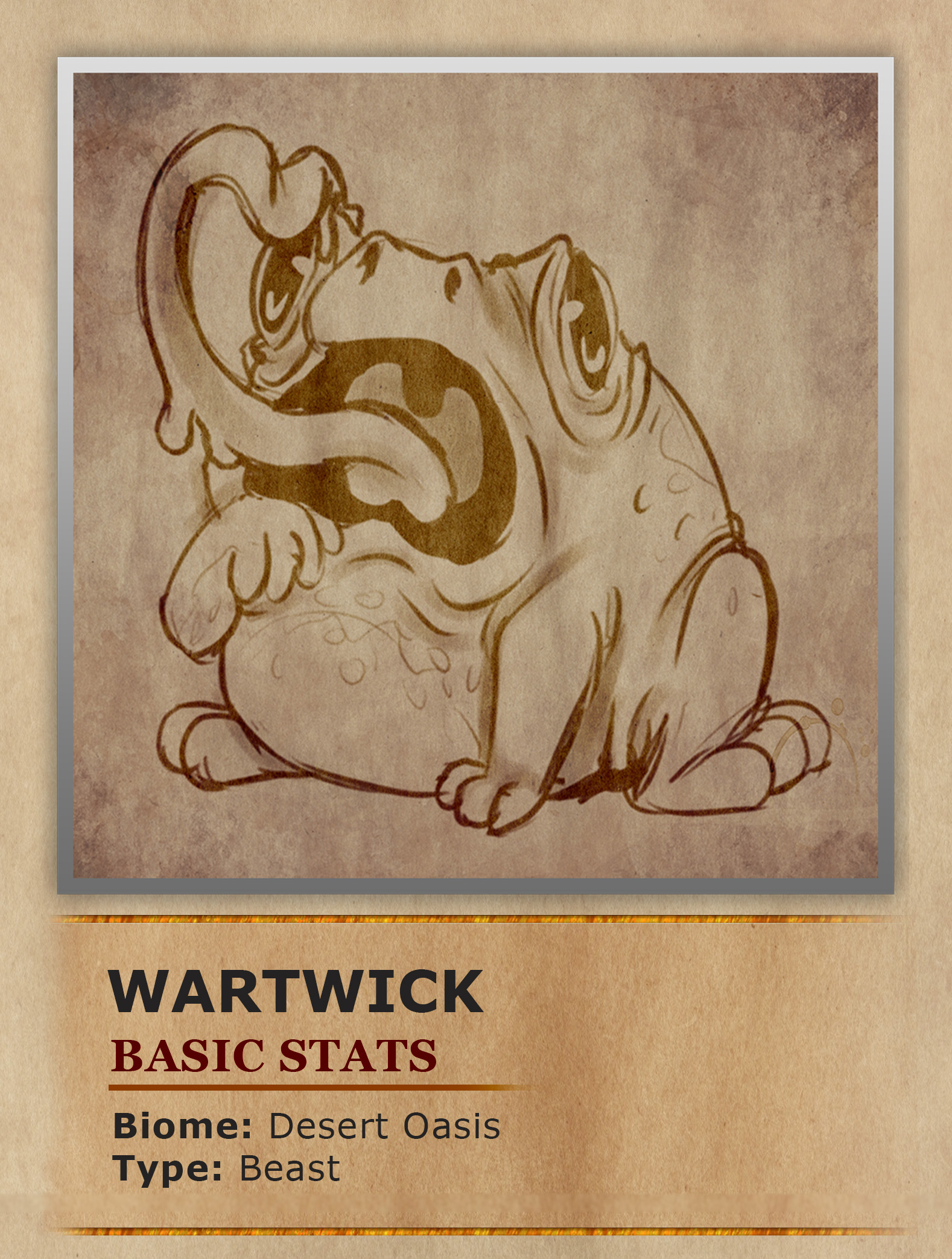 Most would think a desert is not an ideal place for any kind of amphibian. In most cases they would be right but this does not apply to the Wartwick. This strange frog has developed a way to not only survive but thrive in the harsh deserts. The Wartwick has special sensory organs that allow it to detect even the faintest hint of humidity from miles away. This allows them to locate desert oases with exceptional accuracy. Once they make their way to an oasis they are able to soak up a large quantity of water into their bodies thanks to specialized skin flaps. This allows them to travel for great periods of time without water as they search for new oases if the one they are at begins to dry out. Now while they are bloated with water traditional movement is quite difficult. However, their round shape and light weight allows them to simply be pushed by the desert's strong winds. This not only saves energy but also lets them cover vast distances much faster than they would otherwise. When it comes to the Warwick needing actual food they simply find larger animals and use their long tongues to free the animal of annoying parasites. This gives the Wartwick much needed food and cleans the larger organism as well. These frogs not only have adapted expertly to their environment but also act as bioindicators for desert natives. As one needs to simply look at the size of a nearby Wartwick to see how well an oasis’s water supply is doing. The larger the frog the better the amount of water.