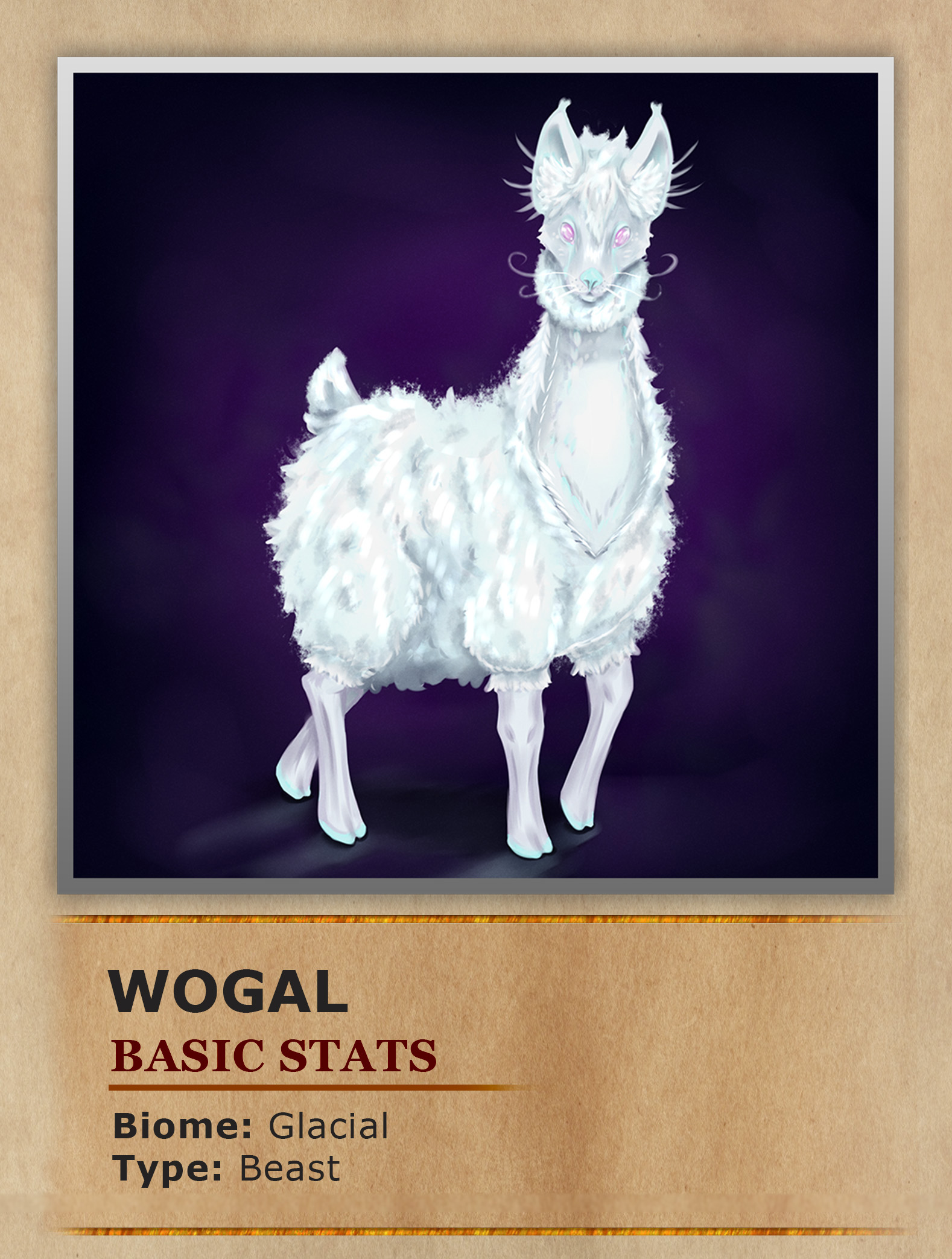 Due to their valuable fur, Wogals are often domesticated by the natives of Tardrix. Their wool is a vital resource, used to create warm clothing and insulation to withstand the brutal cold. Additionally, Wogals are employed as working animals, their gentle demeanor and sturdy build making them ideal for hauling loads through the snow. Despite their imposing size, these creatures embody a quiet resilience, thriving in one of the most unforgiving climates in the world.