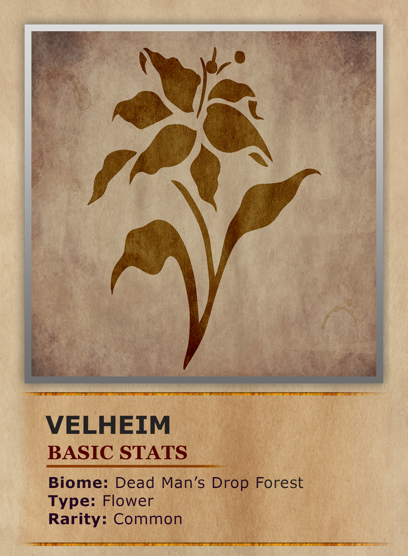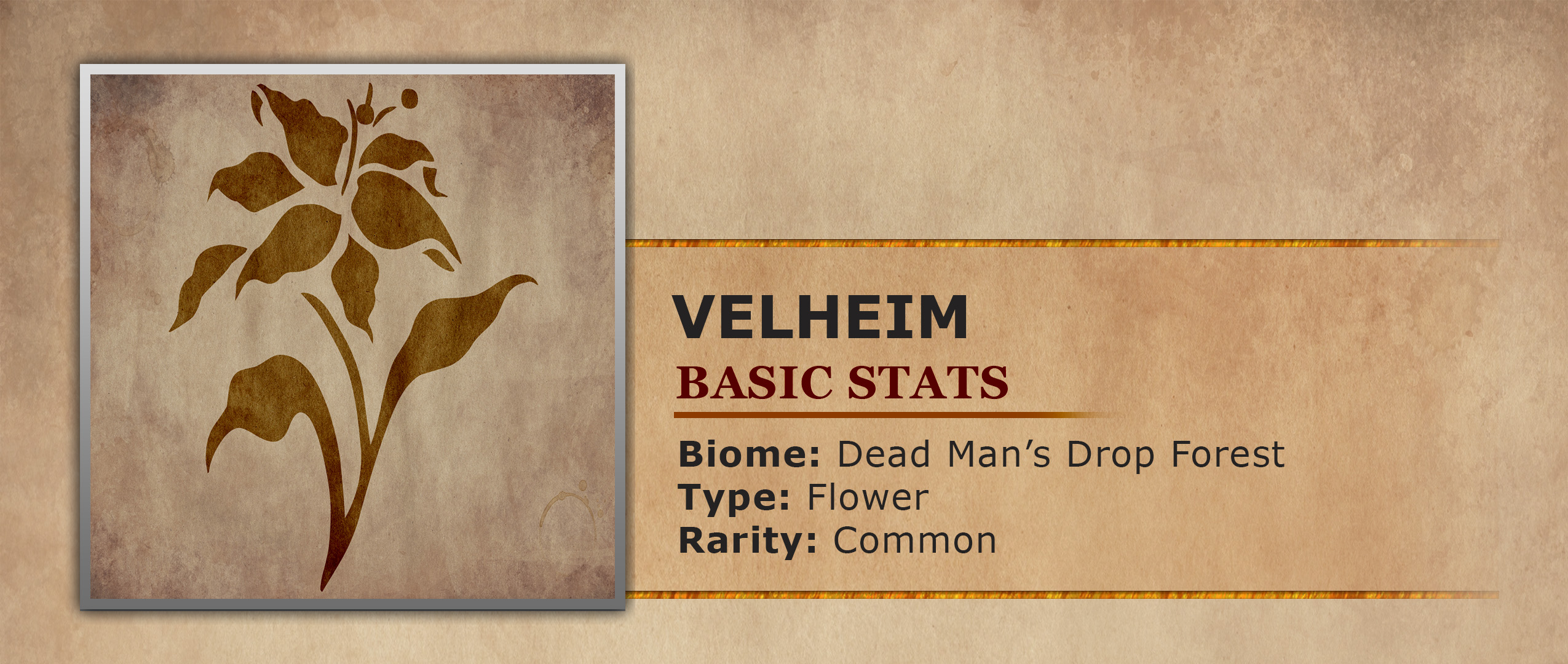 In Dead Man’s Drop Forest there is a wide variety of plant life. One such plant that grows here is known as the Velheim. This large flowering plant's leaves can reach up to 2 meters or 6ft in length. They are typically found growing upon trees in large clusters. The plants grow upon trees for support and the tree's height helps the Velheim to reach sunlight closer to the forest canopy. In fact these plants can grow on trees in such large quantities the tree can be completely taken over by the plants. Unlike many plants the Velheims leaves are closed into a bulb shape during the day, only to fully open after the sun has set. This is because during the day the large plant bulbs house an insect species native to the forest. These insects known as Vuhorns, use the plants to protect them from the sun's harsh light. In return the Vuhorns act as bodyguards for the plants, from hungry herbivores. Chemicals the plant produces are also theorized to be how the Vuhorn Moths get their glowing abdomens. Natives of Dead Man’s Drop Forest know to avoid the plants as the sun begins to set, or face the Vuhorns wrath.